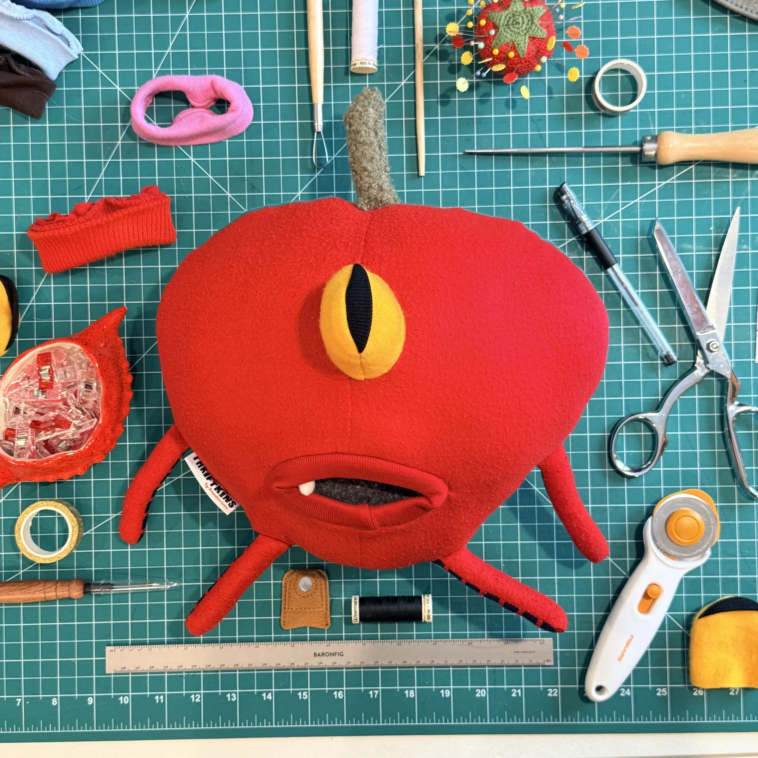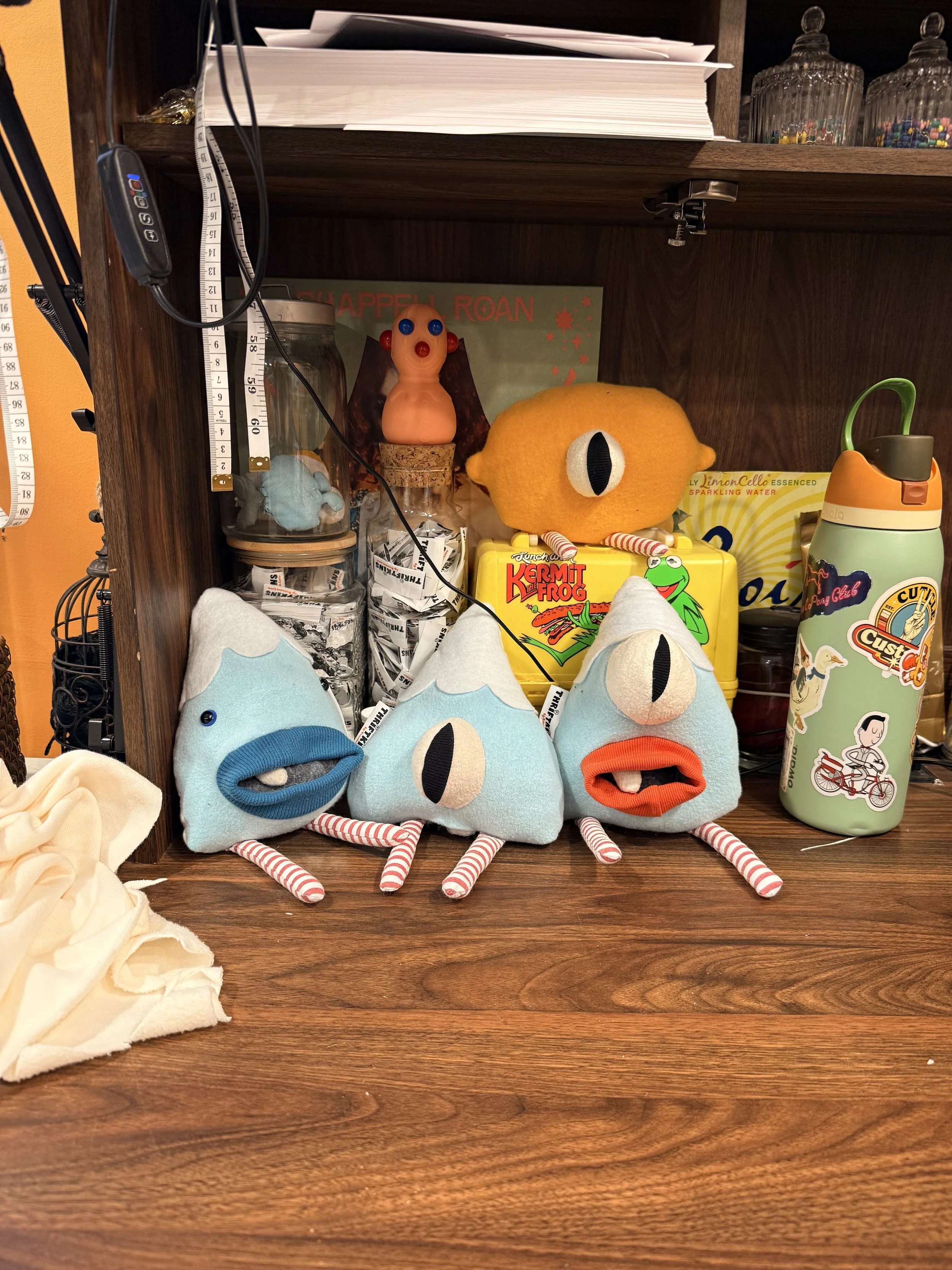 I make one-of-a-kind, wabi-sabi little friends out of the landfill-destined clothes real people wore and loved. Mouths from sleeve cuffs. Tongues from sweatpants. Teeth from tube socks. Ears from sweater hems. Nothing matches, and that’s the point.