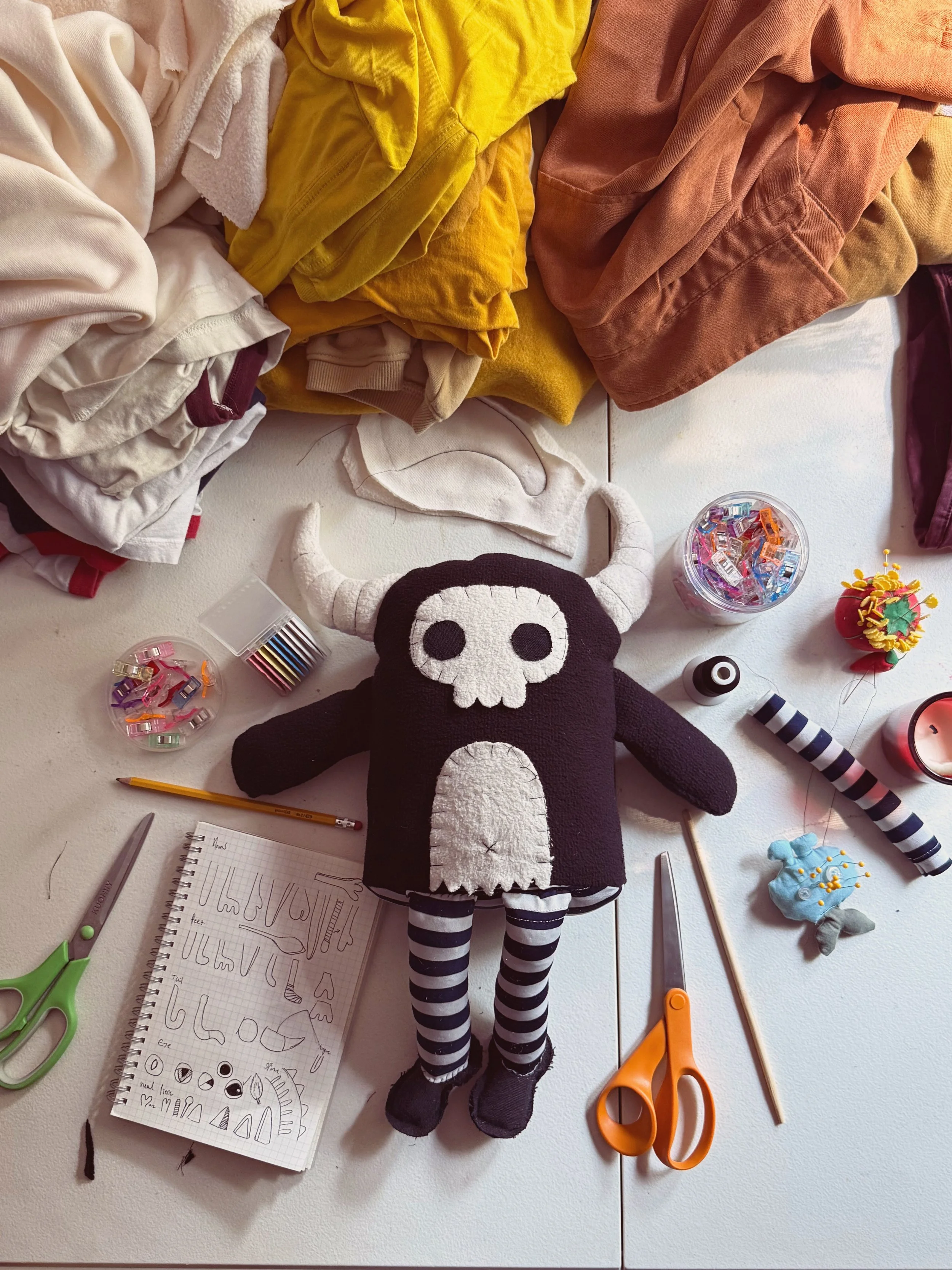 Handcrafted Thriftkins are made from thrifted sweatshirts & more. Each character is one of a kind.